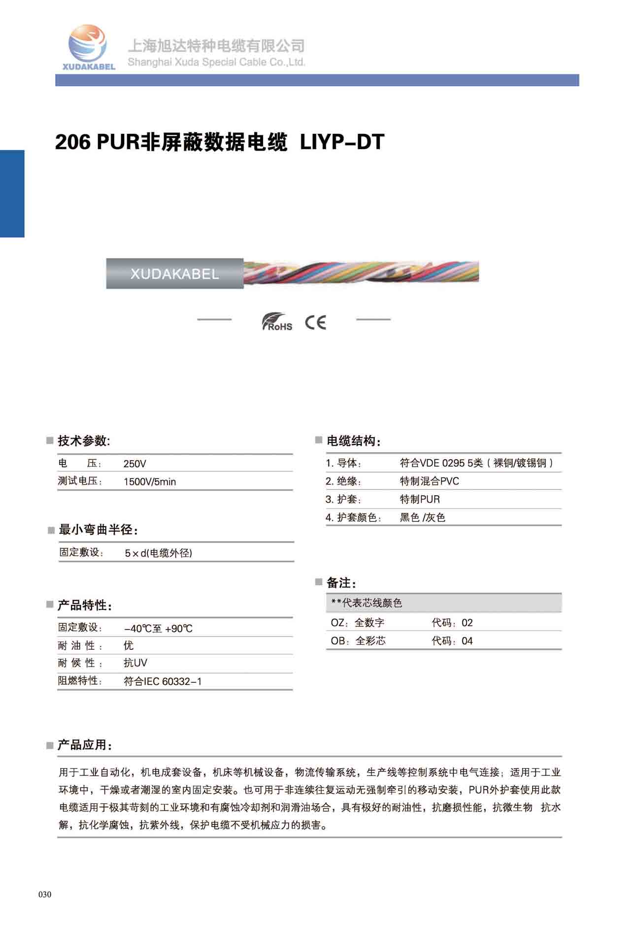 206 PUR非屏蔽數(shù)據(jù)電纜 LIYP-DT