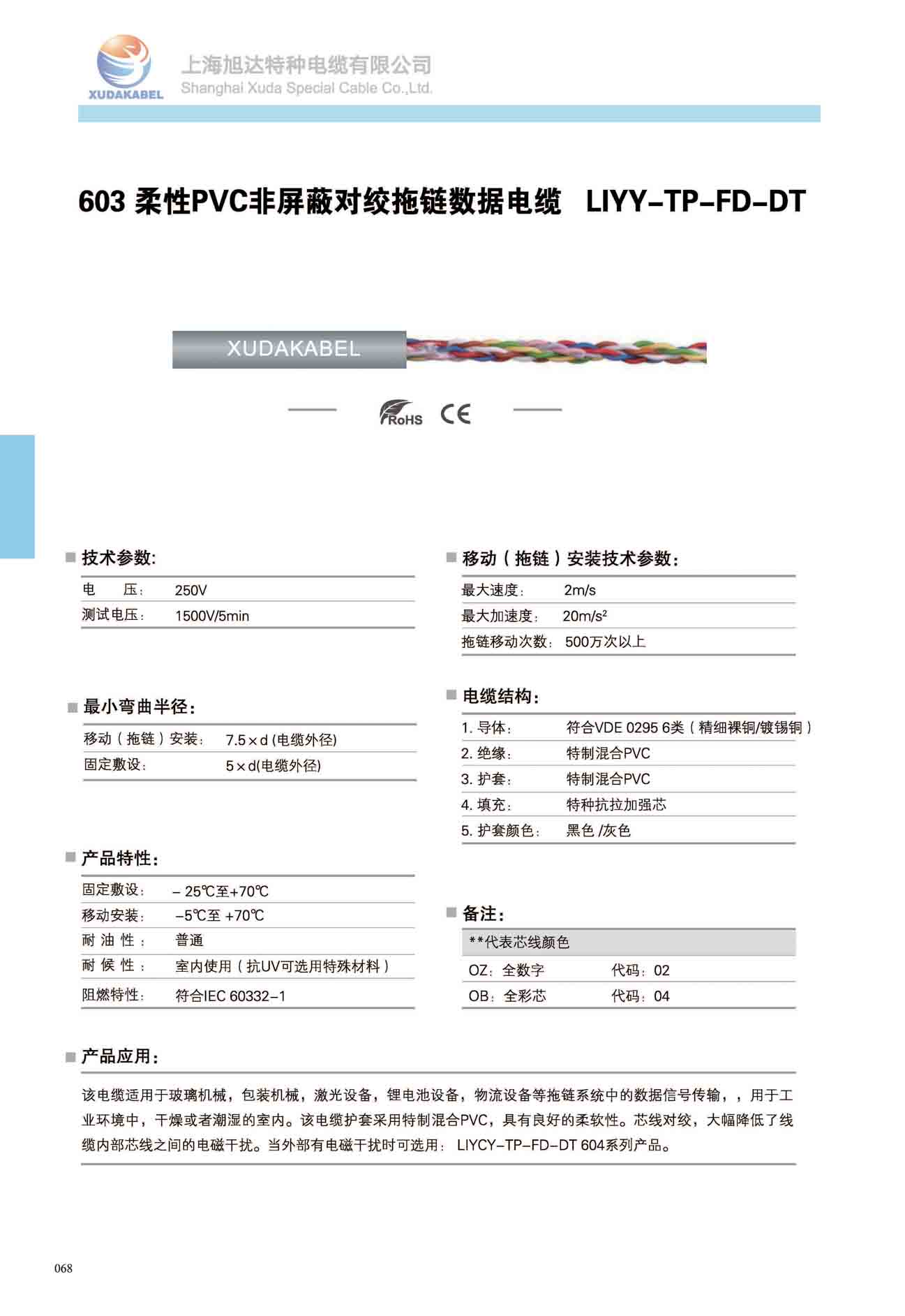 603柔性PVC非屏蔽對絞拖鏈數(shù)據(jù)電纜LIYY-TP-FD-D
