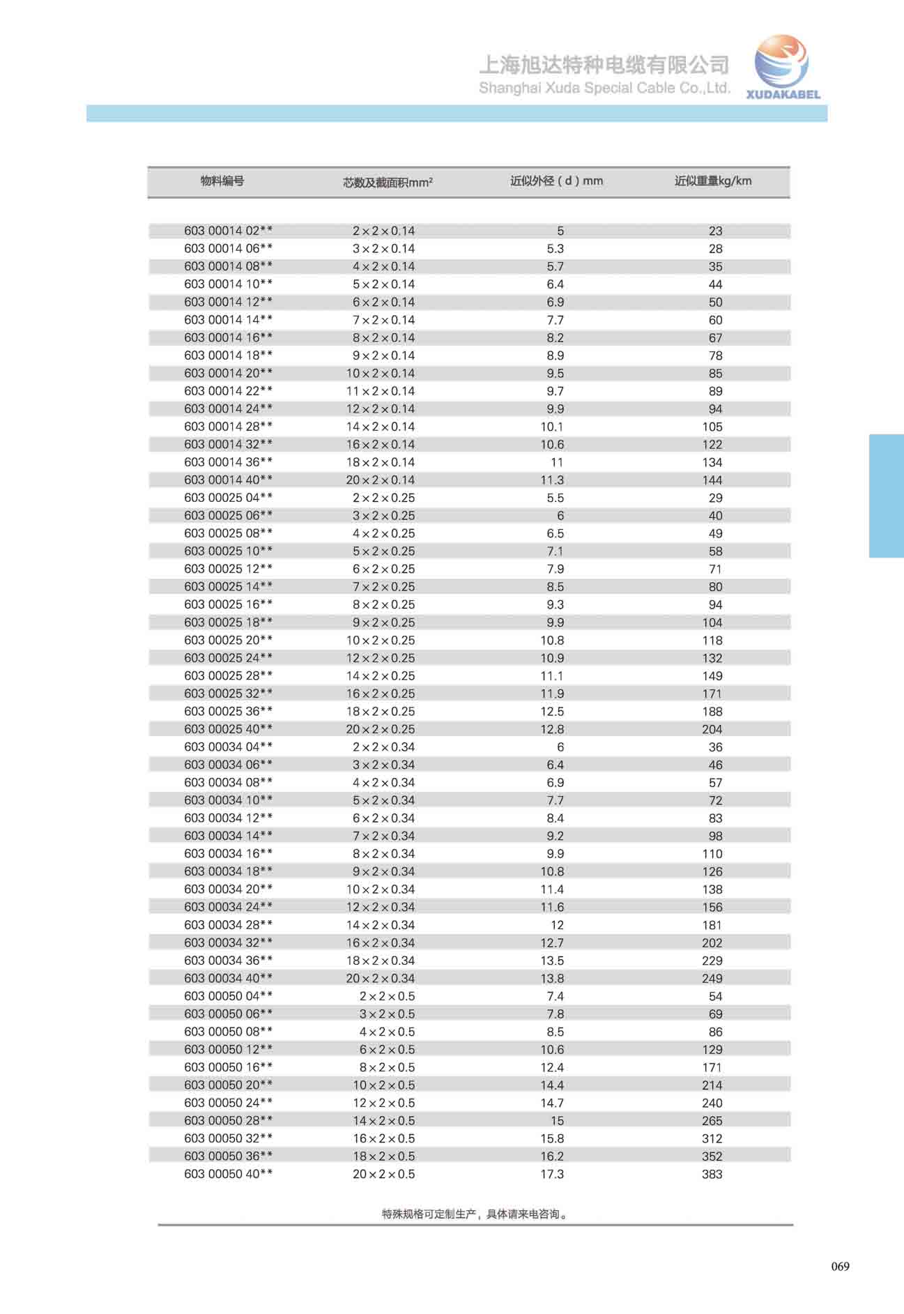 | 電纜近似重量Kg/km |