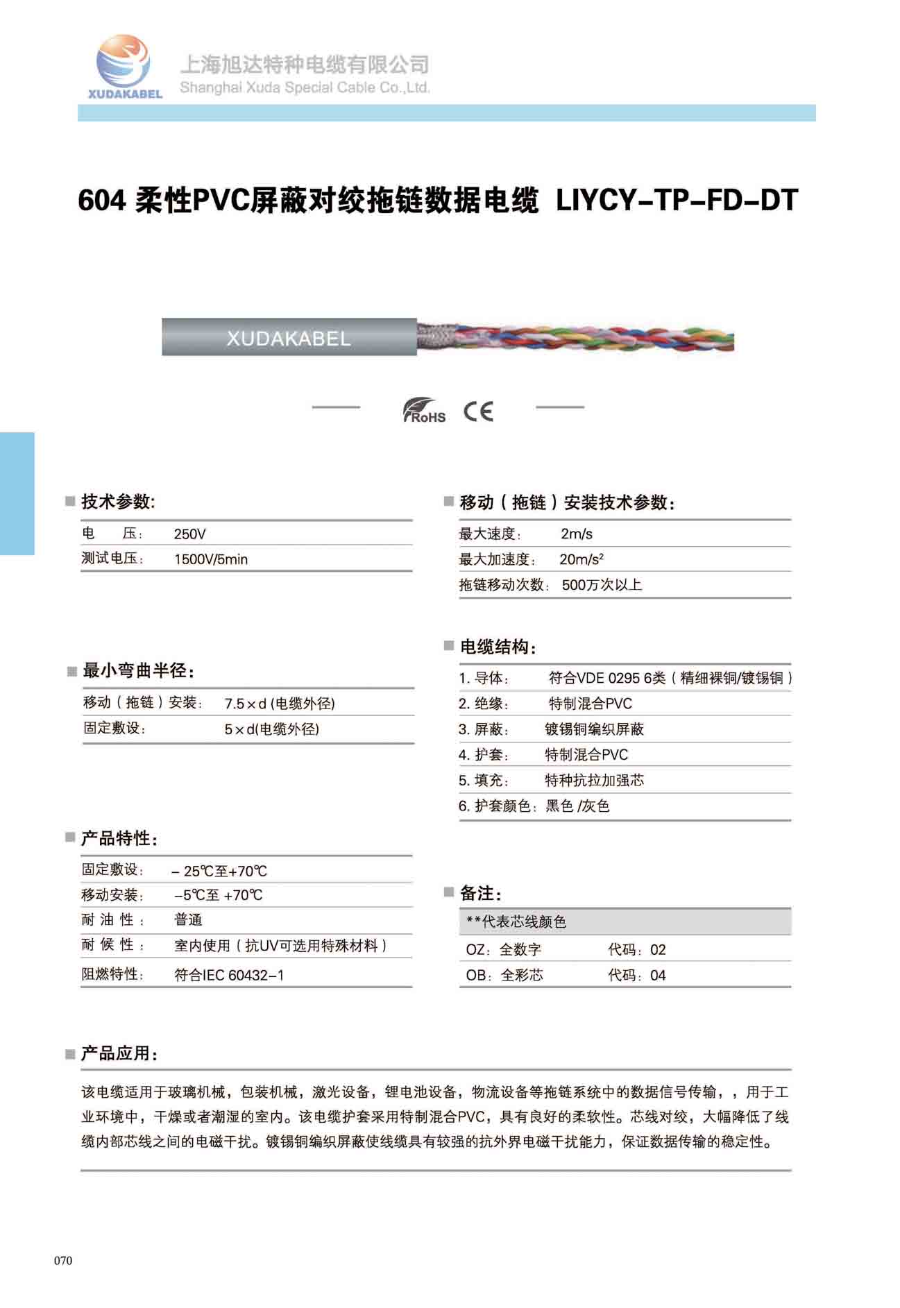 604柔性PVC屏蔽對絞拖鏈數據電纜LIYCY-TP-FD-DT