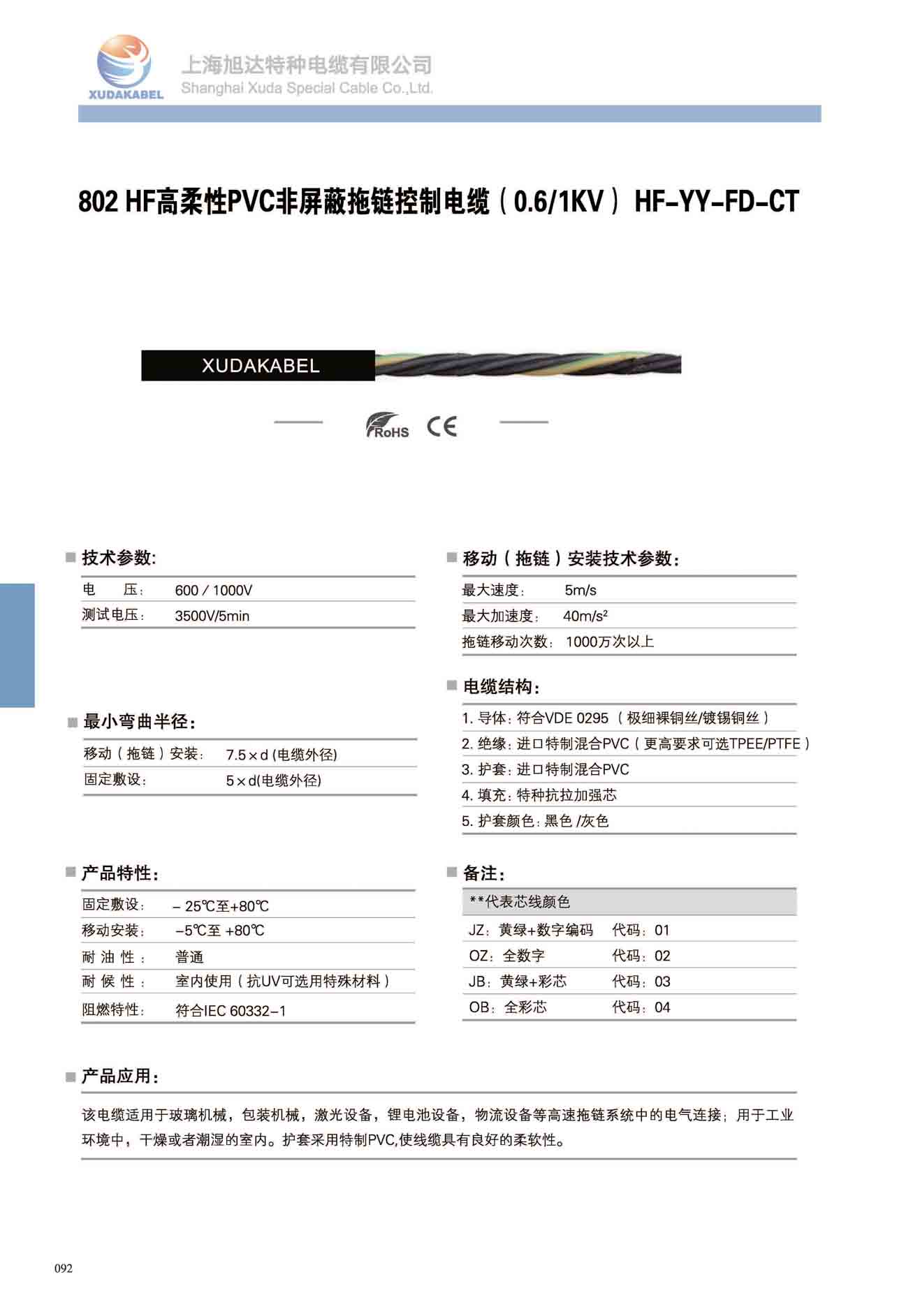 802HF高柔性PVC非屏蔽控制拖鏈電纜 1KV HF-YY-