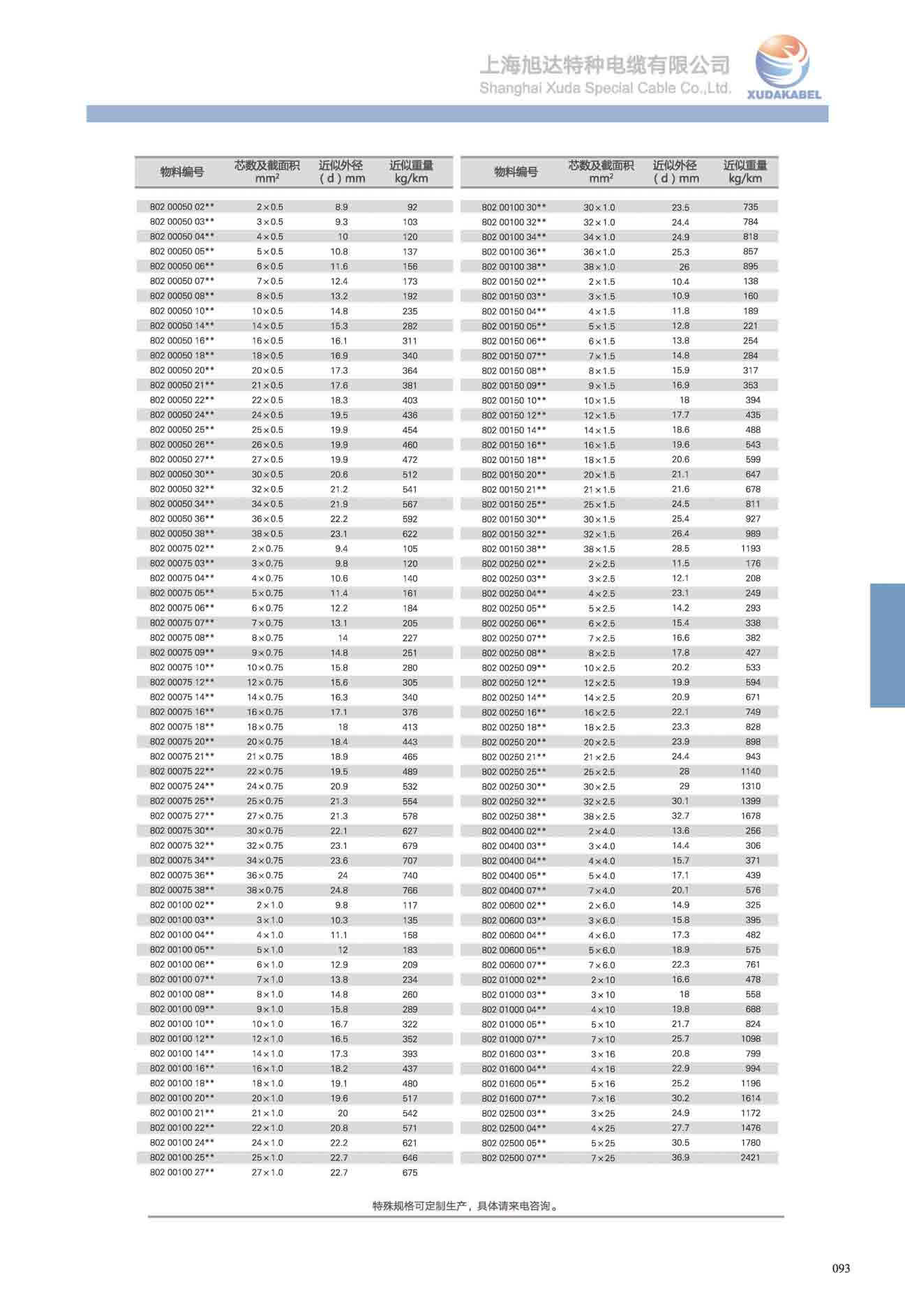 | 電纜近似重量Kg/km |
