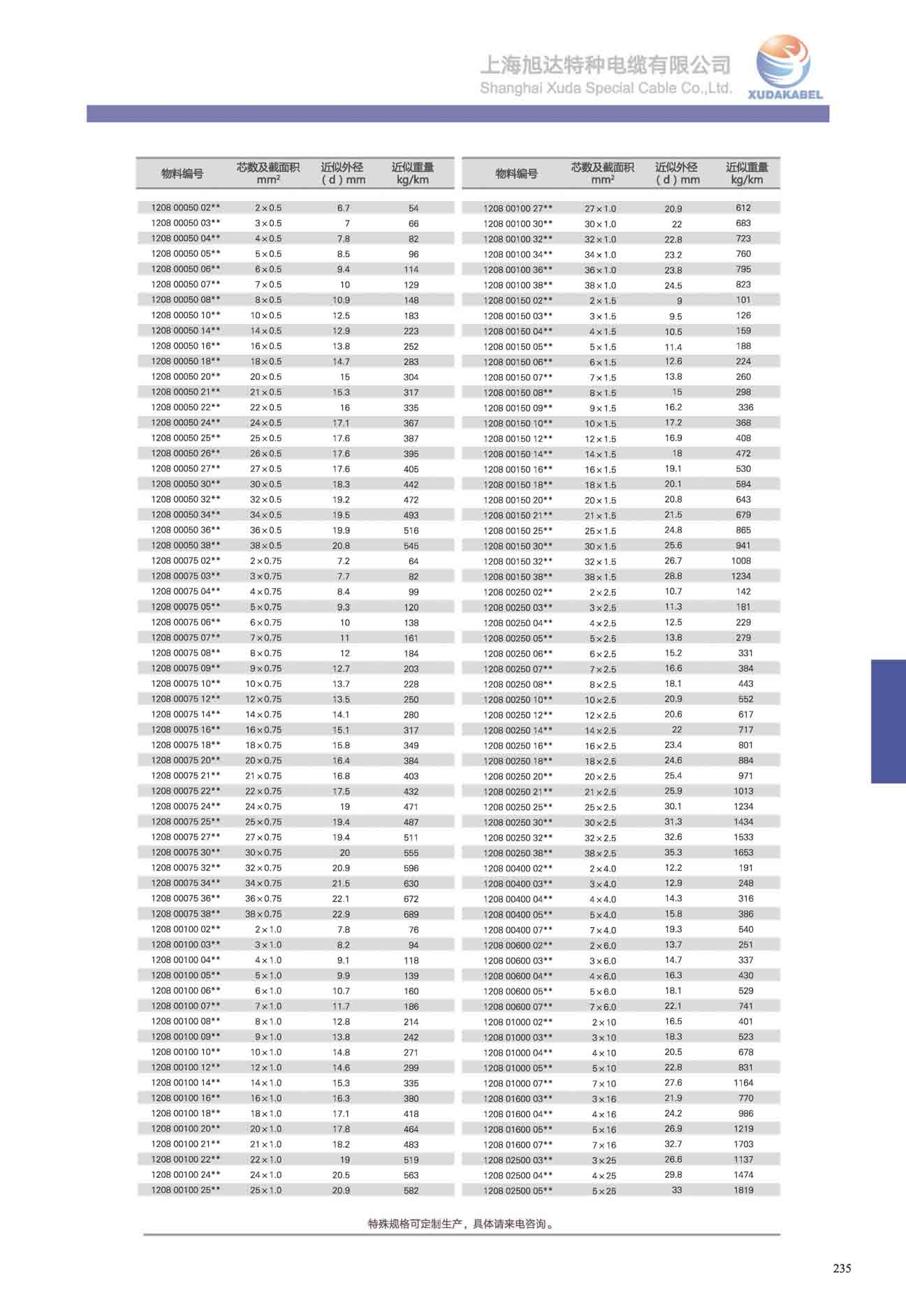 | 物料編號 | 芯線及截面積mm2 | 最大外徑(d)mm | 電纜近似重量Kg/km |