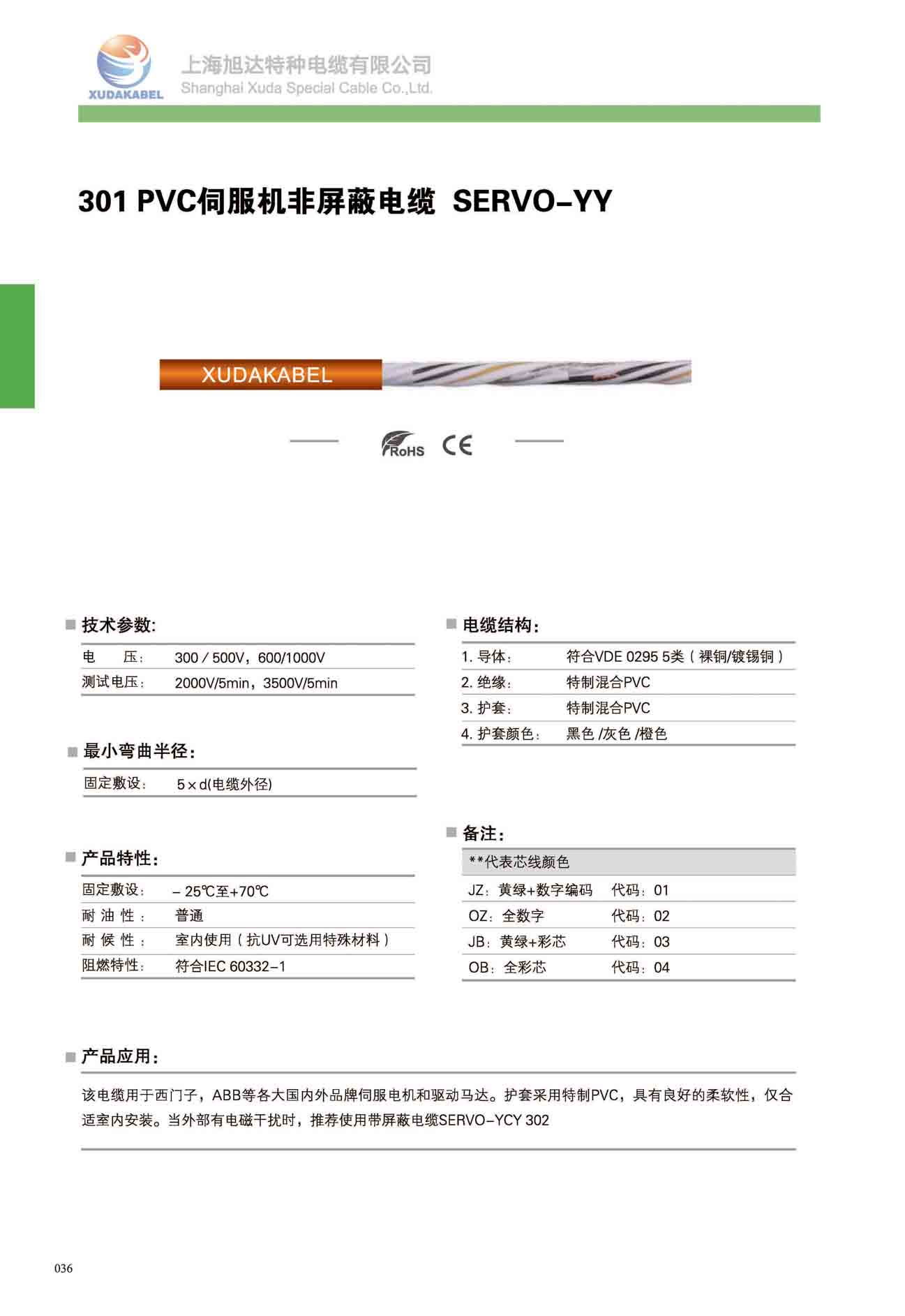 301 PVC伺服機非屏蔽電纜 SERVO-YY