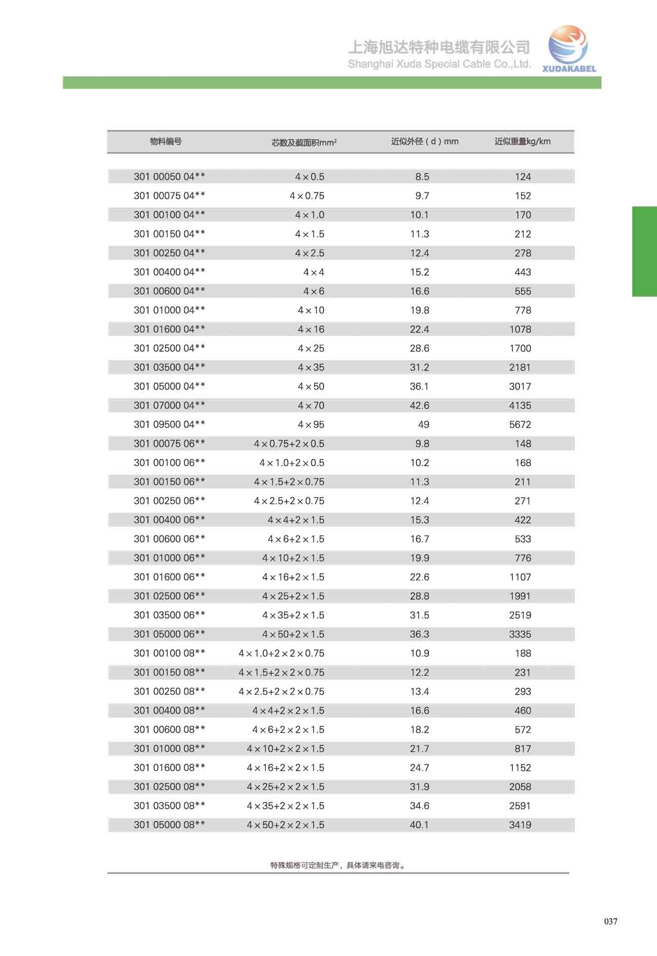 | 物料編號 | 芯線及截面積mm2 | 最大外徑(d)mm | 電纜近似重量Kg/km |