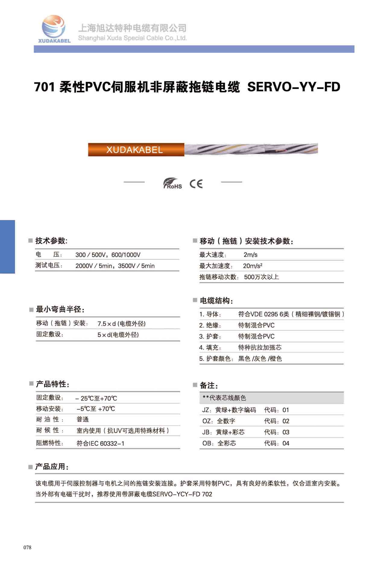 701柔性PVC伺服機(jī)非屏蔽拖鏈電纜 SERVO-YY-FD