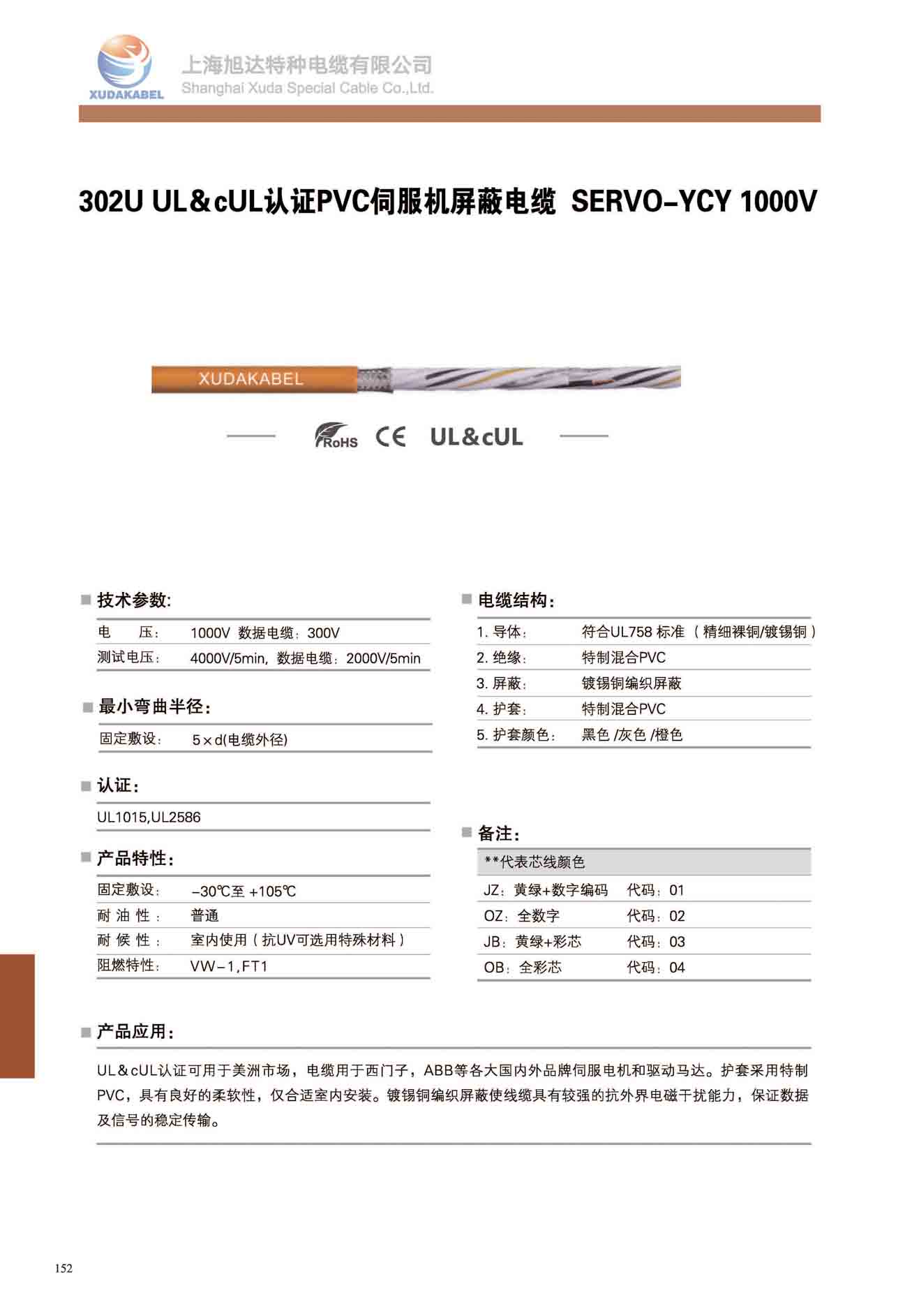 302U UL&cUL認(rèn)證PVC伺服機屏蔽電纜 SERVO-YCY 1000V