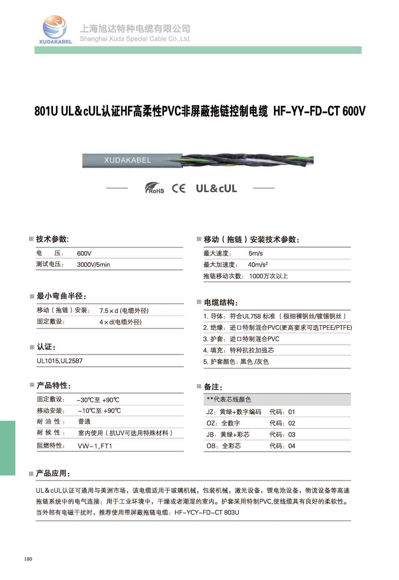 801U UL&CUL認(rèn)證HF高柔性PVC非屏蔽拖鏈控制電纜