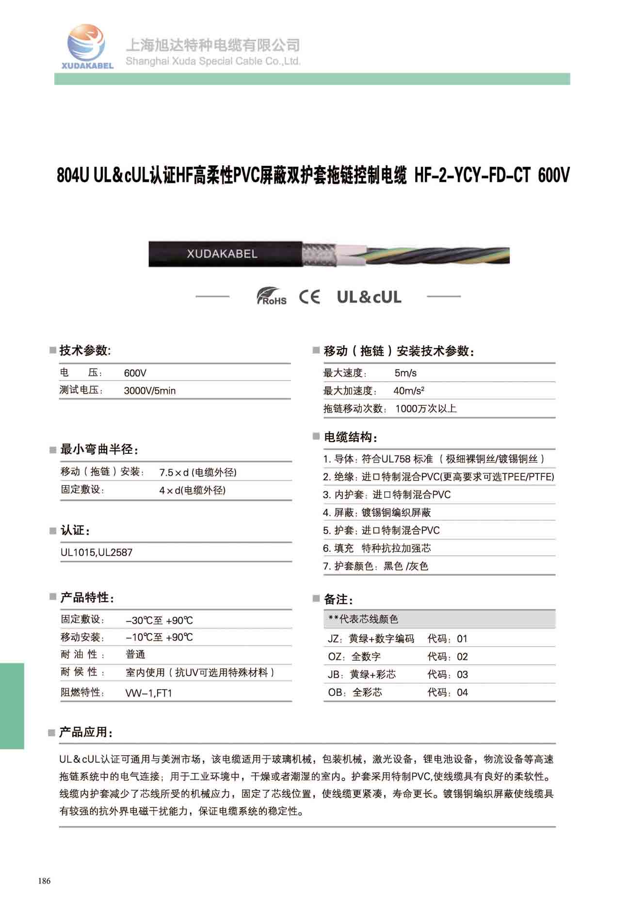 804U UL&CUL認證高柔性PVC屏蔽雙護套拖鏈控制電纜