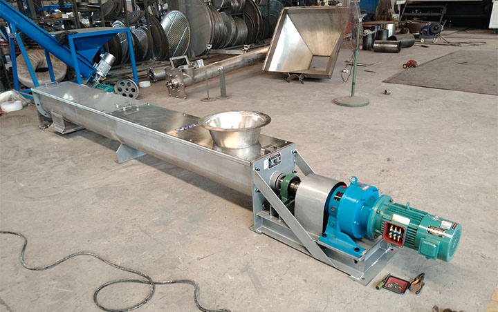 U型螺旋輸送機采用U型槽結構,加可拆卸機蓋方便觀察可清理殘留物料,可用于短距離,傾斜角度小于20°的情況下輸送,可以輸送各種類型的石膏粉,在輸送粘性、潮濕的石膏粉時需要選擇無軸設計的,可以避免堵料,可以任意點進料,和多點下料。