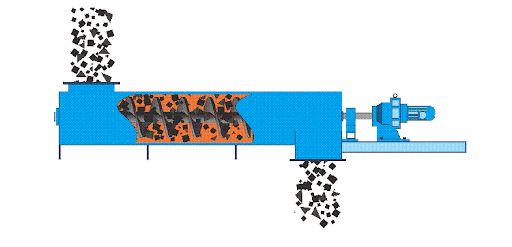 石膏粉螺旋輸送機工作時,只見石膏粉從進料口位置進入螺旋體,通過電機驅動螺旋葉片產生向前的推力,石膏粉會被螺旋葉片推著沿著槽體向前移動,直到出料口位置排出。