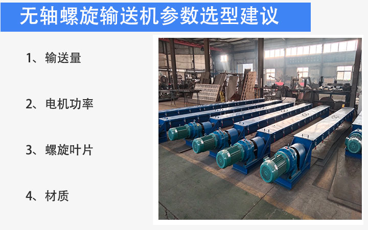 在選擇一臺(tái)合適的設(shè)備時(shí),要確保設(shè)備適配實(shí)際工況。輸送量比較重要,物料流動(dòng)性好則輸送量略大,粘性極大則輸送量減小,傾斜安裝時(shí)每?jī)A斜10度,輸送量需降低5%-10%。電機(jī)功率主要用于克服物料與襯板的摩擦,參考功率適用于常規(guī)輸送長(zhǎng)度,若輸送長(zhǎng)度超過(guò)一定值,需適當(dāng)加大功率。螺旋葉片常用16Mn錳鋼或耐磨合金鋼,殼體根據(jù)防腐需求選用304不銹鋼或碳鋼Q235。